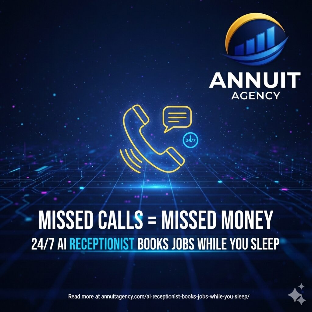 Missed Calls = Missed Money: How a 24/7 AI Receptionist Books Jobs While You Sleep Annuit Agency • AI Missed Calls = Missed Money: How a 24/7 AI Receptionist Books Jobs While You Sleep If you run roofing, HVAC, or plumbing, you already know the truth: the phone is your lifeline. The problem is you […]